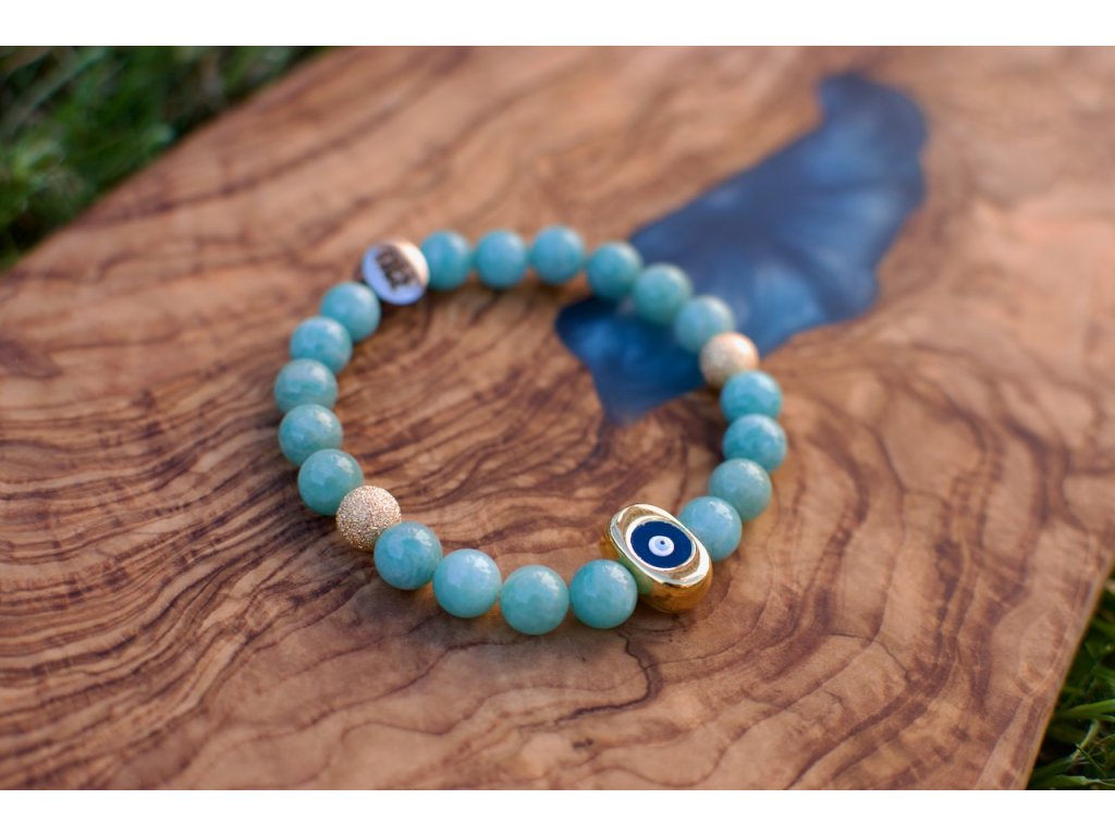 Dominantou šperku je pozlacený přívěsek s řeckým okem – tradičním symbolem ochrany a bdělosti.