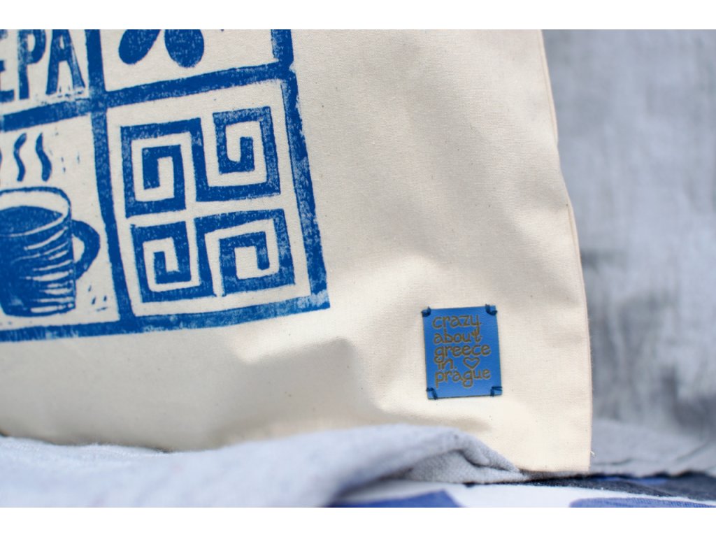 Doplňuje ji koženkový štítek s logem crazy.about.greece.in.prague.