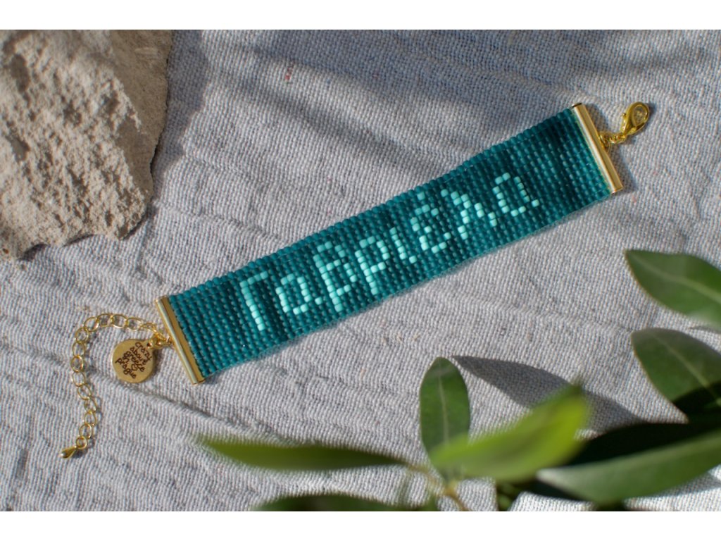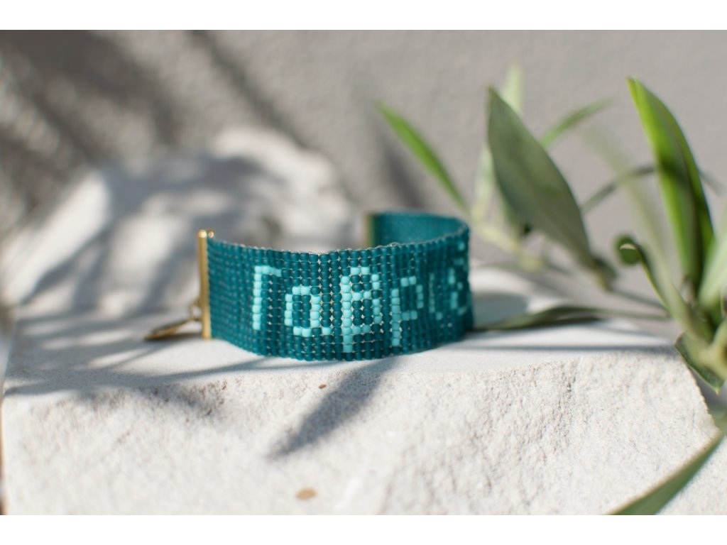 Široký tkaný náramek z korálků TOHO se jménem v řečtině