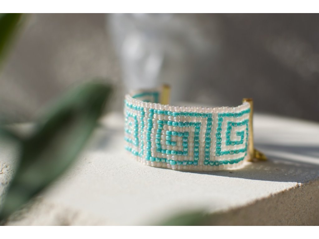 Tkaný náramek z korálků TOHO s řeckým meandrem v řeckém stylu